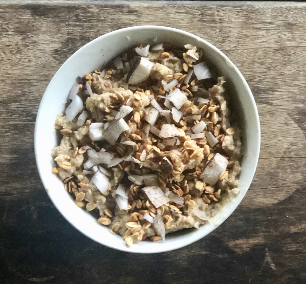 – Top with coconut flakes, more cinnamon, banana slices and granola & enjoy!